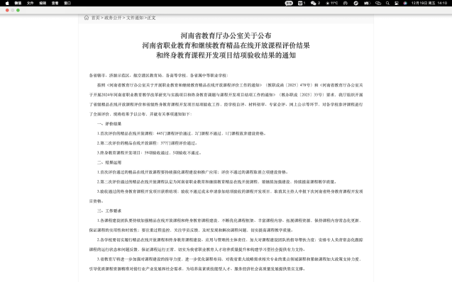 近日,河南省教育厅办公室公布河南省职业教育和继续教育精品在线开放课程评价结果,我院范江波老师牵头的项目凭借优质的课程设计、扎实的教学内容与突出的实践价值,顺利通过省级评价,获评河南省职业教育精品在线开放课程!