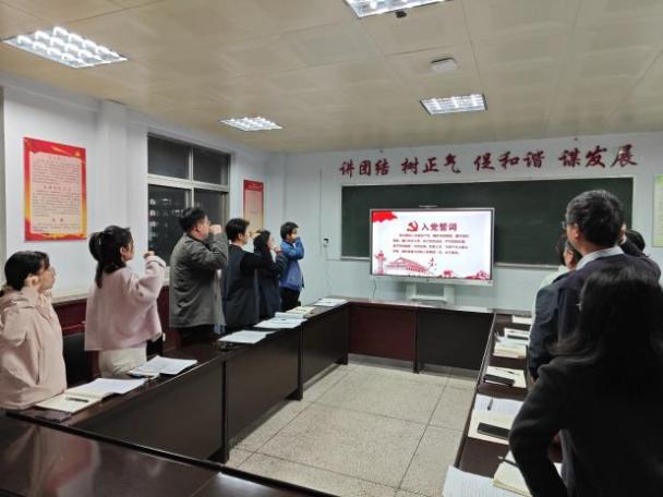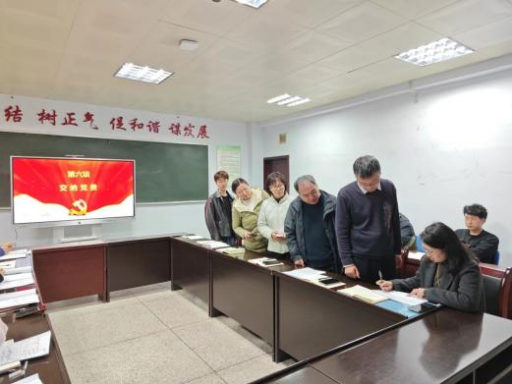 在重温入党誓词环节,由吴萍领誓,全体党员面向党旗庄严宣誓,铿锵有力的誓言再次坚定了大家的理想信念与初心使命。宣誓结束后,与会党员现场交纳当月党费,切实履行党员基本义务,进一步强化了组织观念。此外,活动还设置特色环节,开展教学能力大赛校赛参赛作品交流分享与观摩指导,以赛促教、以赛促改,为学院教学改革积蓄力量、夯实基础。