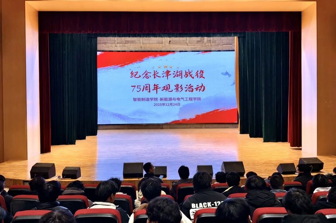 12月24日晚,智能制造学院 新能源与电气工程学院在大学生活动中心举办“铭记历史·致敬英雄”纪念长津湖胜利75周年主题观影活动,集体观看爱国主义影片《长津湖之水门桥》,纪念长津湖战役胜利75周年,深切缅怀革命先烈,重温峥嵘历史,弘扬伟大抗美援朝精神。学院党总支书记秦冲、全体专兼辅导员及25级全体学生共同参与此次活动。