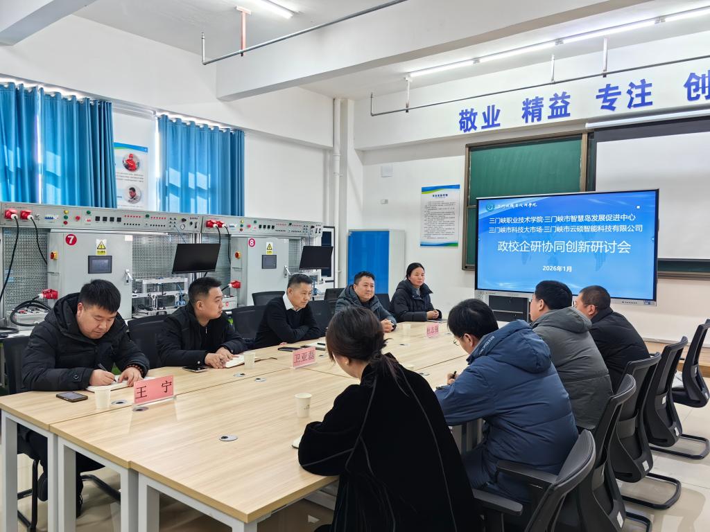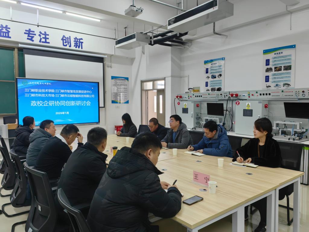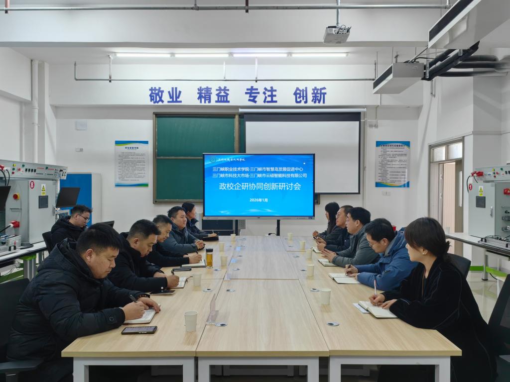 1月12日,三门峡职业技术学院与三门峡市智慧岛发展促进中心、三门峡市科技大市场、三门峡市云硕智能科技有限公司联合召开政校企研协同创新研讨会。四方代表齐聚一堂,围绕资源整合、产教融合、科研创新、服务区域经济高质量发展等核心议题深入交流,共商合作发展新路径。